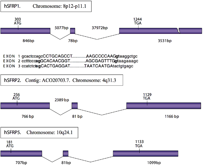 Figure 1. Human SFRP1, SFRP2 and SFRP5 genes