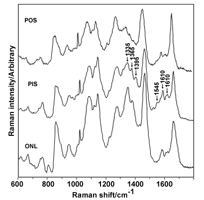 Figure 3. Raman spectra of the outer segments of porcine retina recorded using an excitation wavelength of 633 nm