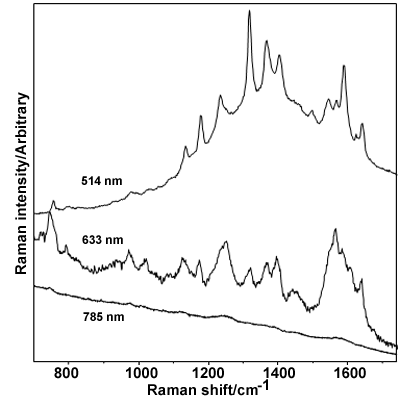 Figure 5. Raman spectra of cytochrome c exciting at 785, 633 and 514 nm