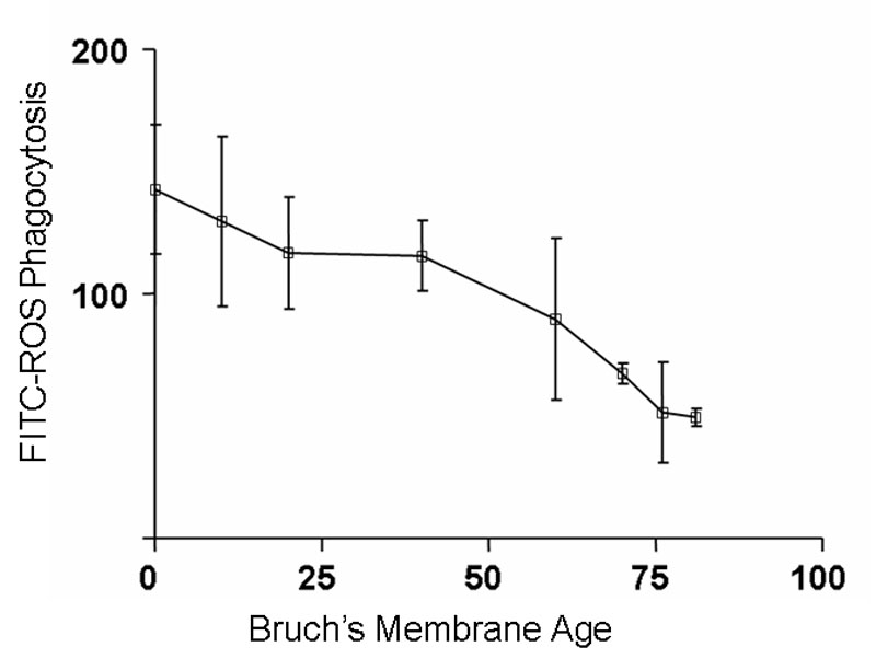 Figure 5. Phagocytosis ability of retinal pigment epithelium as a function of Bruch’s membrane age The average fluorescent intensity