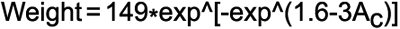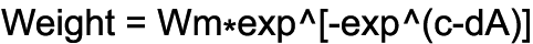 Graphs obtained from the literature were magnified at least ten-fold and the coordinates for the points were measure to the nearest 0.1 mm. The maximum error associated with these measurements was estimated to be 1% for young lenses and less for the older. The relationship between lens weight and age was explored using the linear form of the logistic equation (log Weight=Wm+ b/Age), the Gompertz equation
