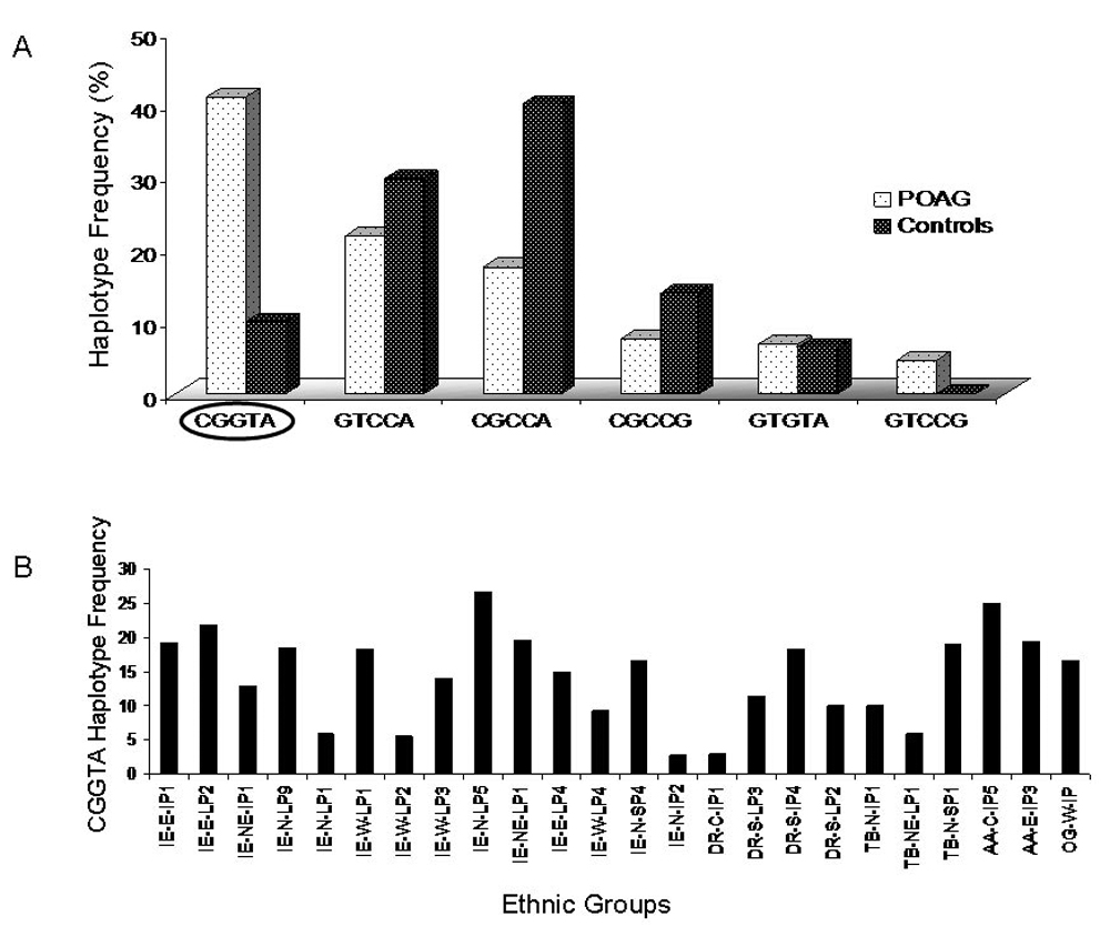 haplotype diversity among patients and controls revealed C-G-G-T-A as