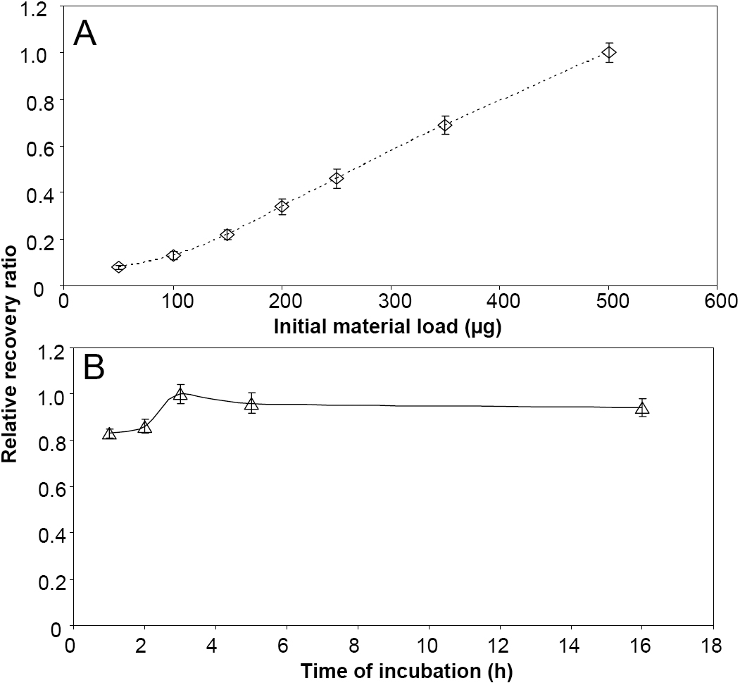 incubated with beads for 3 h, recovered using 1 M NaCl, 100 mM KCl