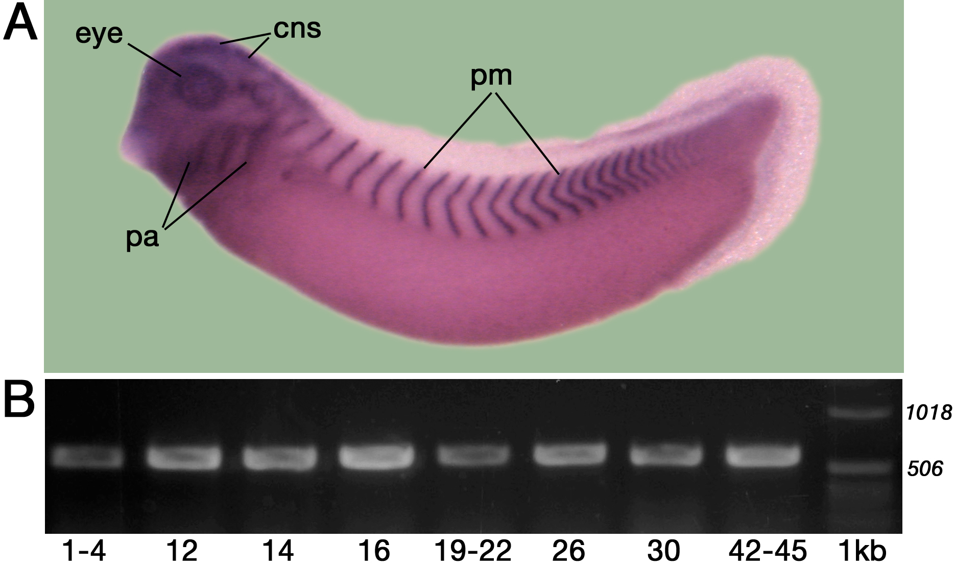 reiterated subset of the paraxial (somitic) mesoderm (labeled as pm).