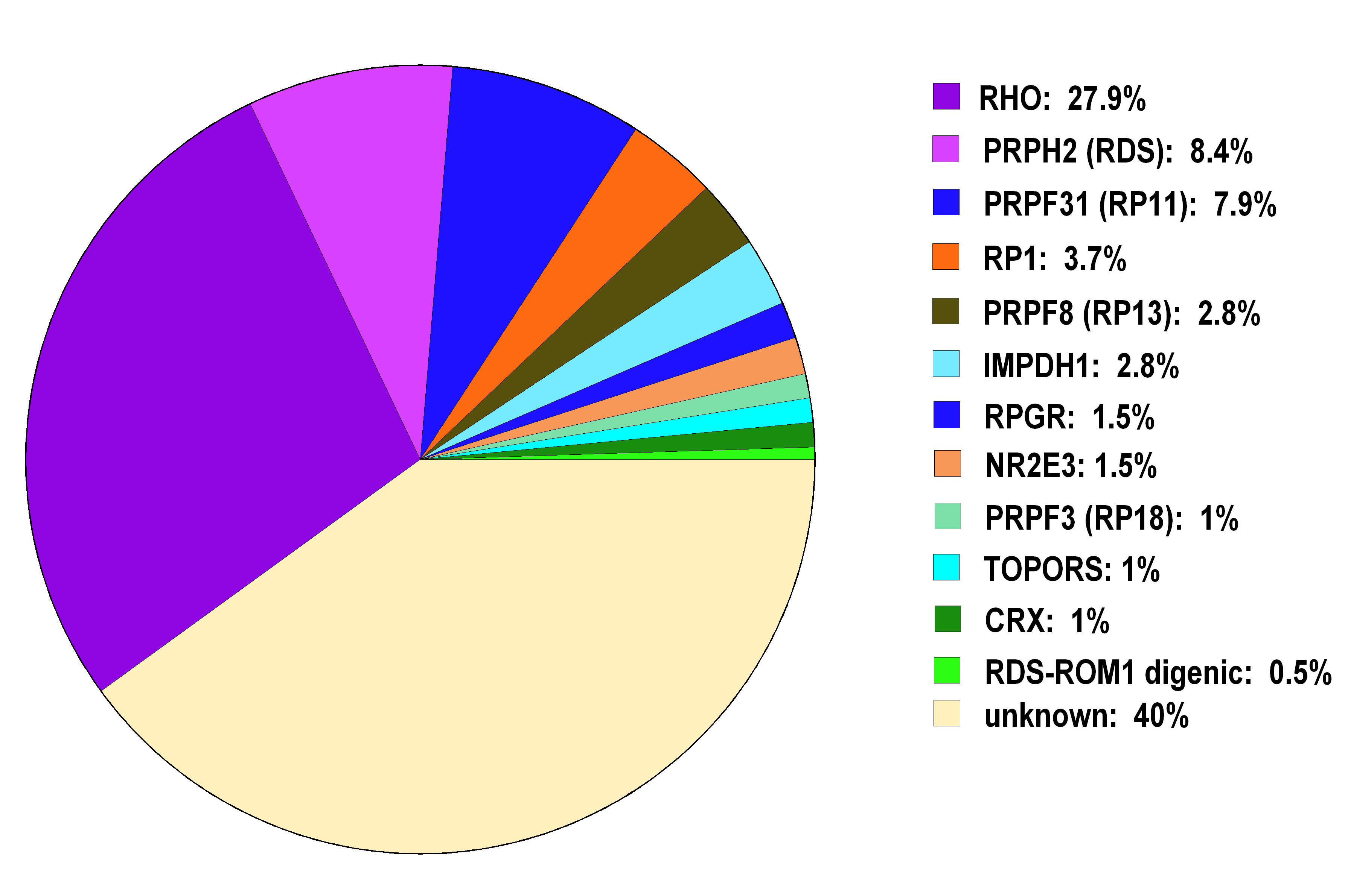 retinitis pigmentosa cohort by gene. Gene abbreviations: rhodopsin
