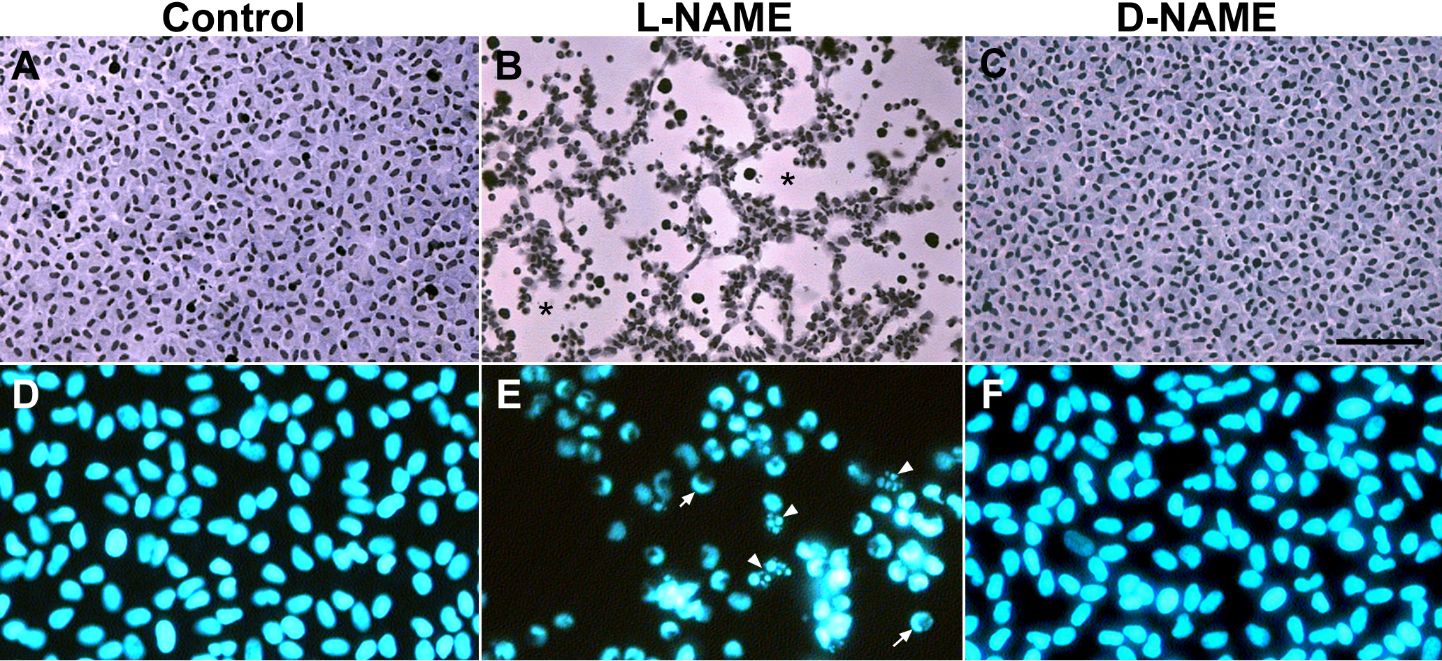 and F) whereas nuclei in the L-NAME-treated explants (E)