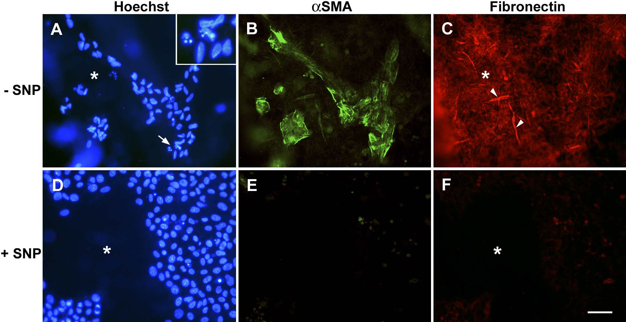 SNP on immunoreactivity for αSMA and fibronectin. Sparsely covered