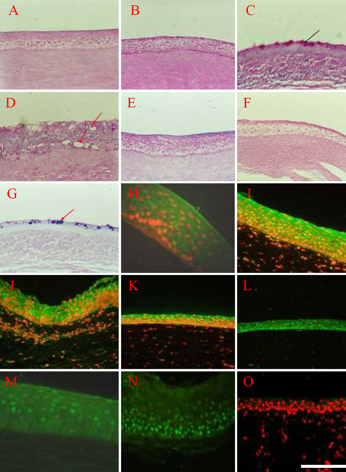 well as reconstructed cornea epithelium (I) expressed CK3, 400X.