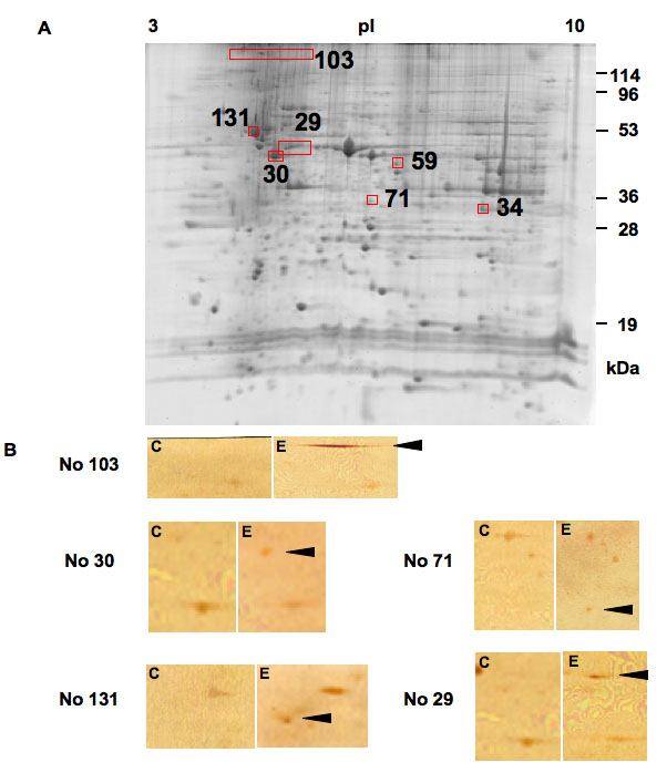 area. Arrowheads indicate the position of each candidate autoantigen on