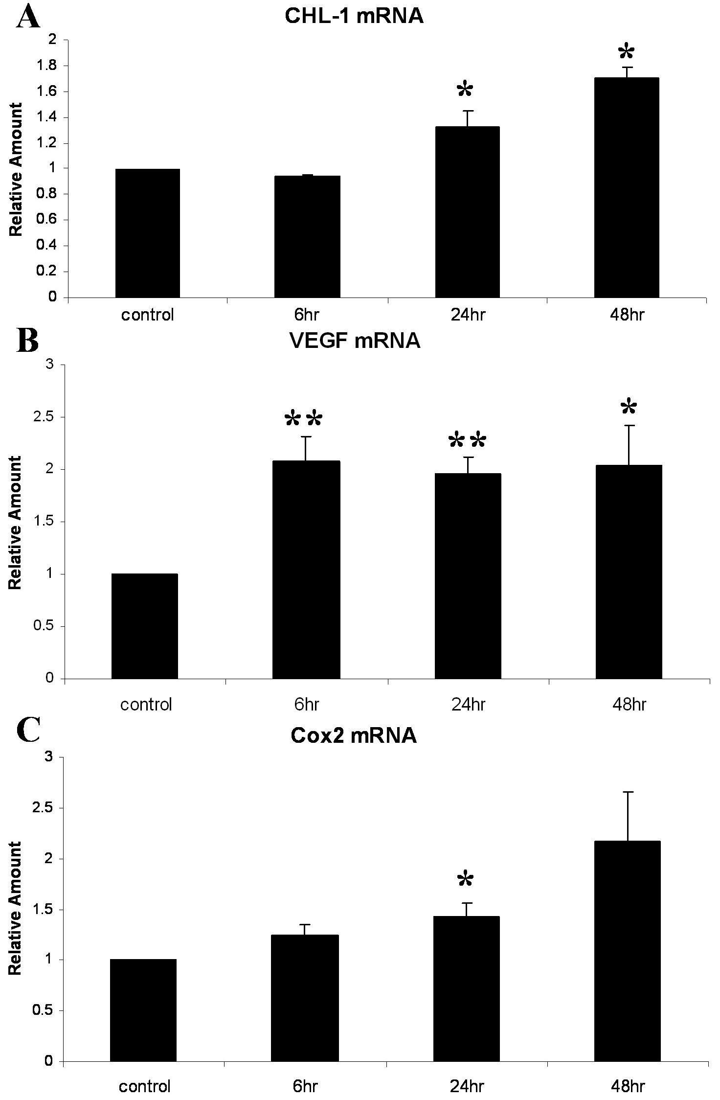 mRNA, (B) VEGF mRNA, and (C) Cox 2 mRNA.