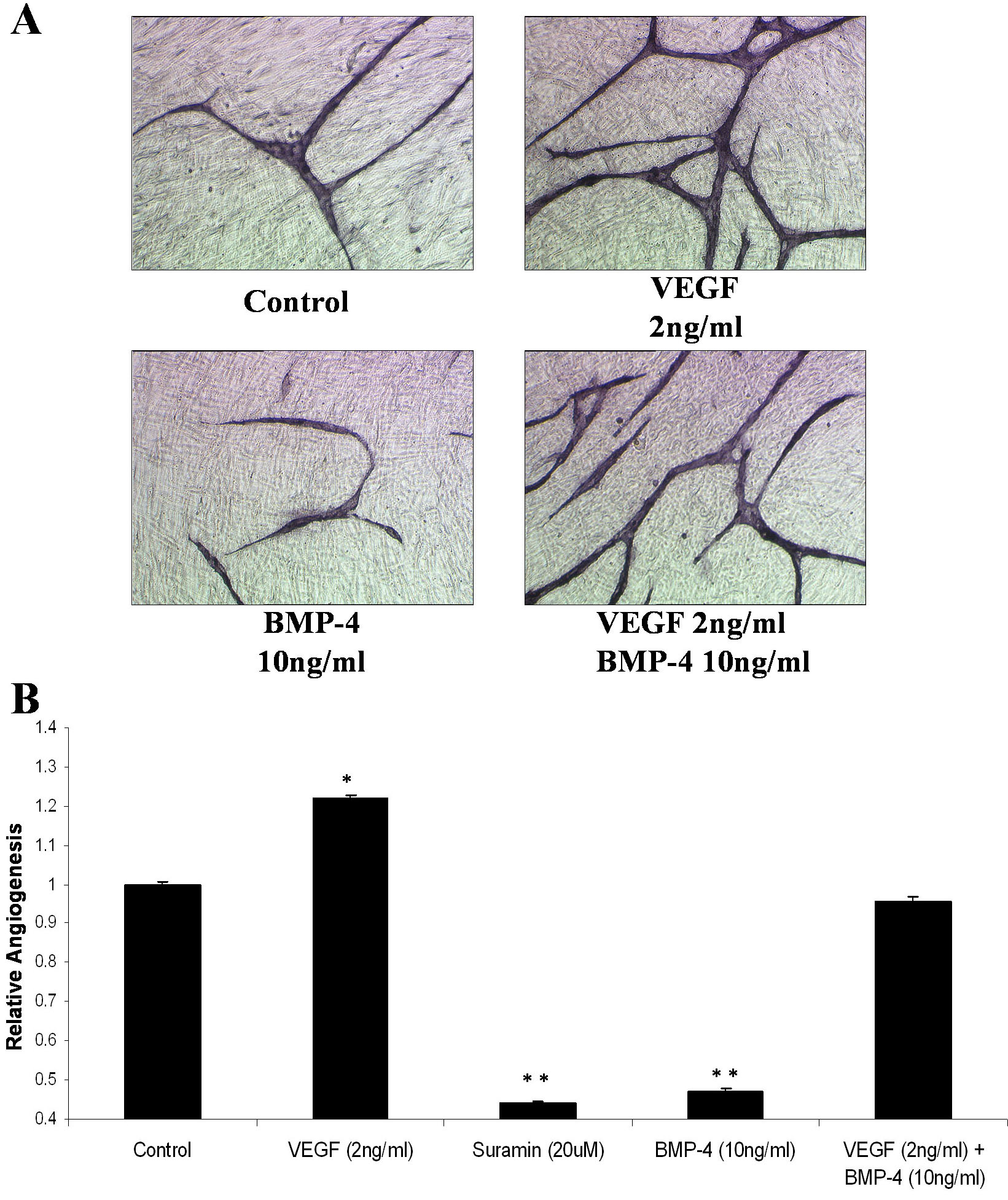 demonstrating the combined effects of VEGF (pro-angiogenic) and BMP-4