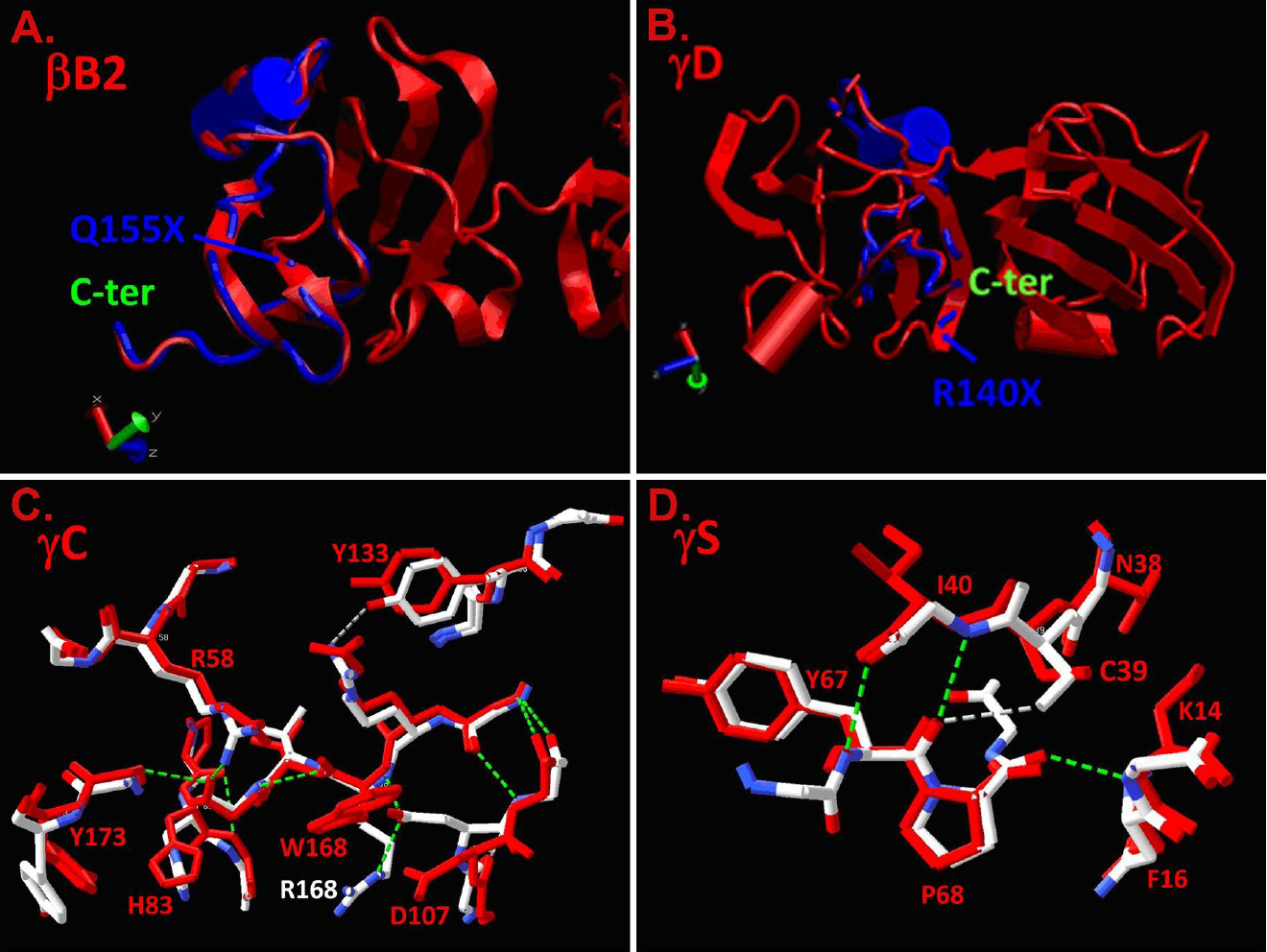 (γS-crystallin) mutations are shown in red. Hydrogen-bonding patterns
