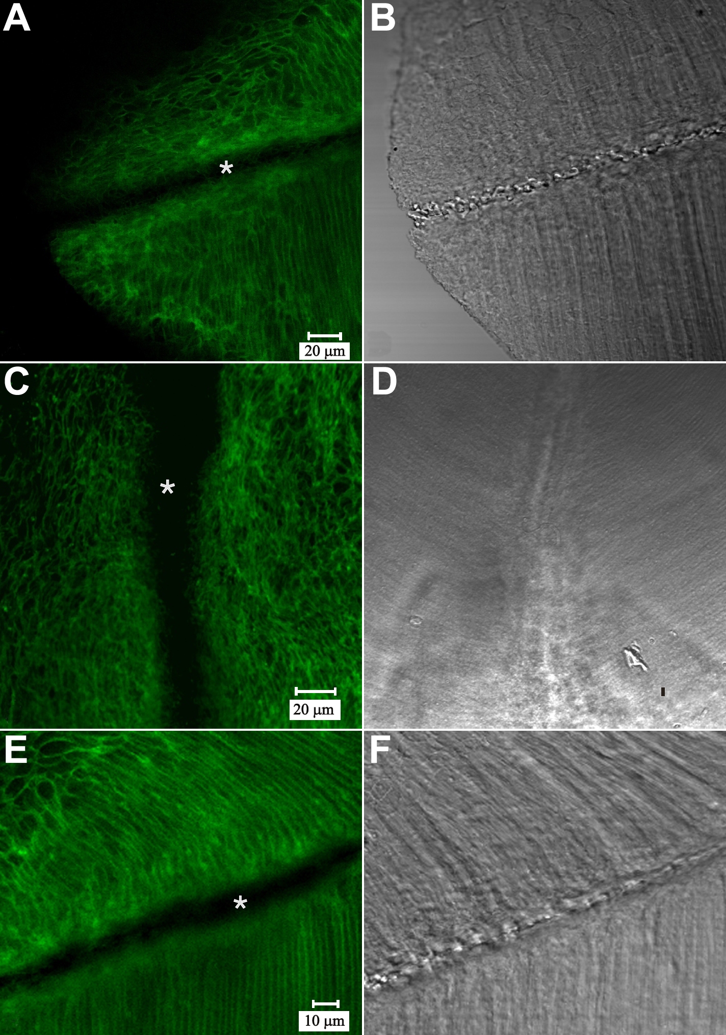 posterior tips of these maturing fibers lack cadherin (asterisk),