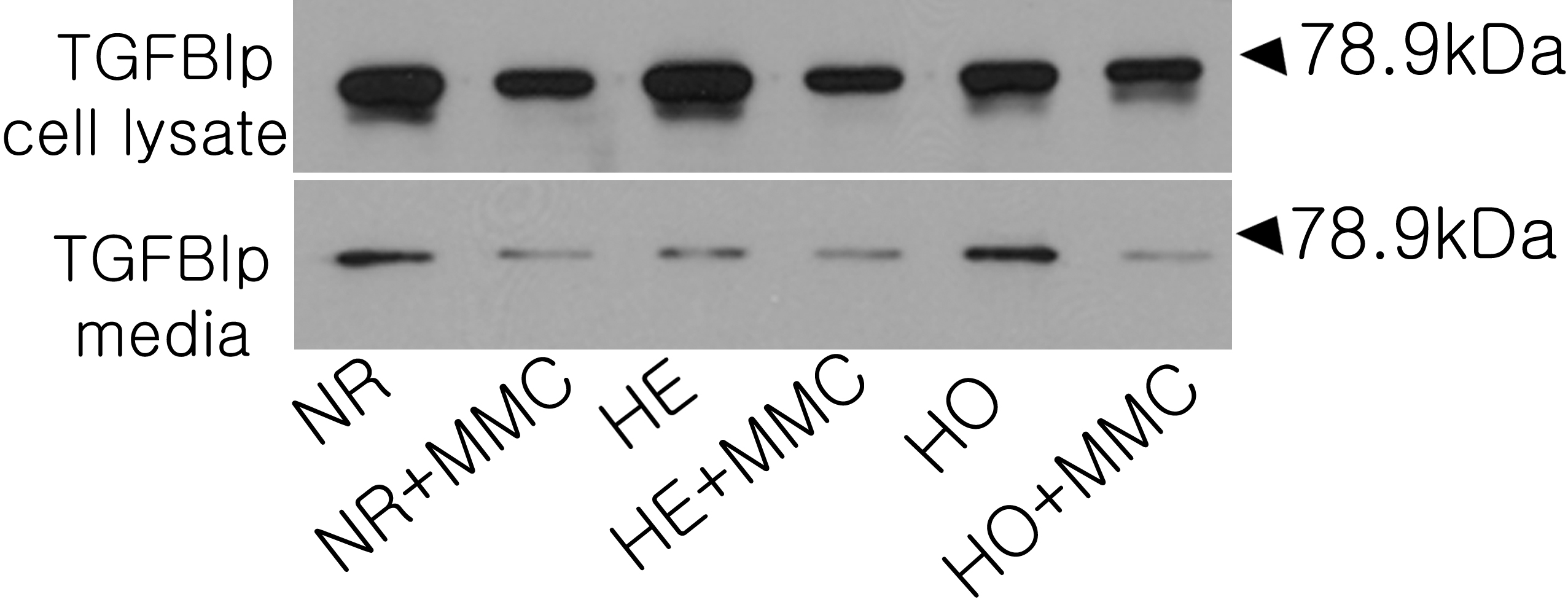 levels using immunoblotting. MMC reduced TGFBIp levels in both cell