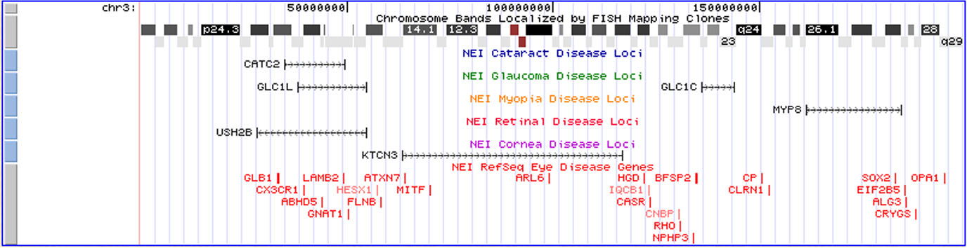 of known eye disease genes and candidate eye disease region tracks