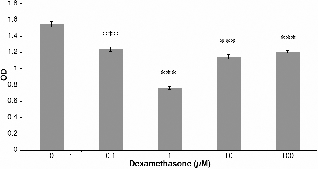 decreased after exposure to dexamethasone for 24 h. The difference in