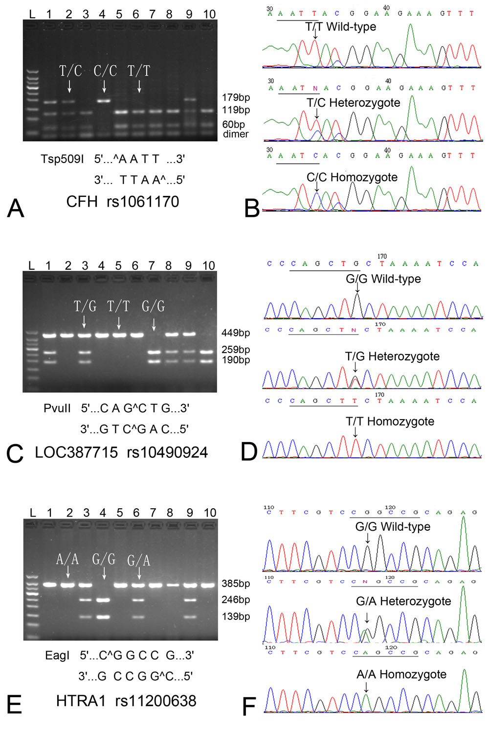 resulted in digestible fragment (G/G), undigestible fragment (T/T), and