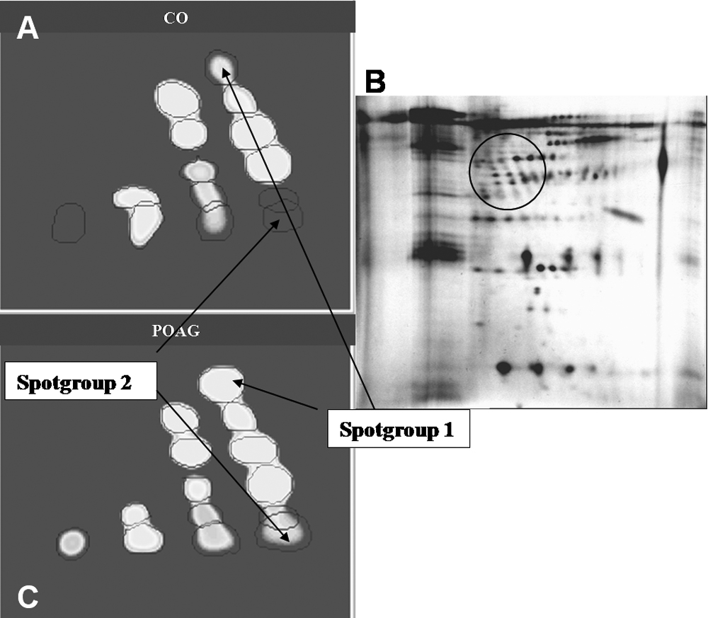 open-angle glaucoma (POAG). B shows a “real” 2D gel of an