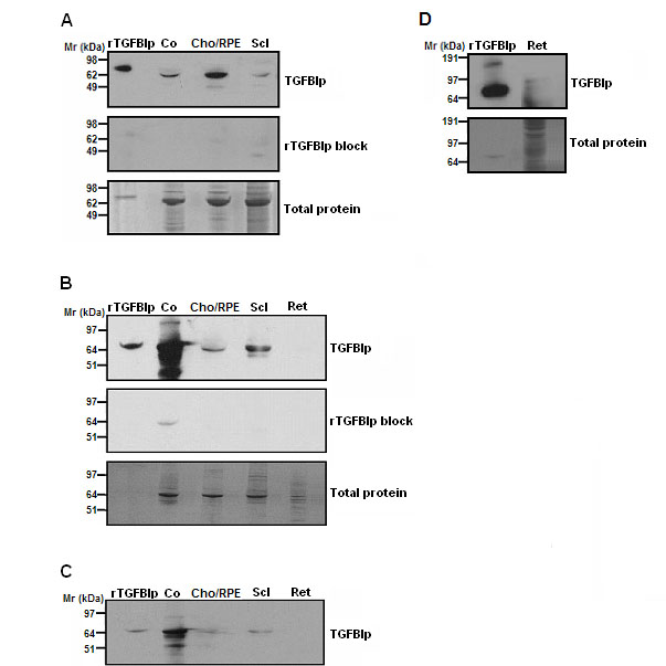 factor, beta-induced protein (TGFBIp) in the cornea (Co), choroid/RPE