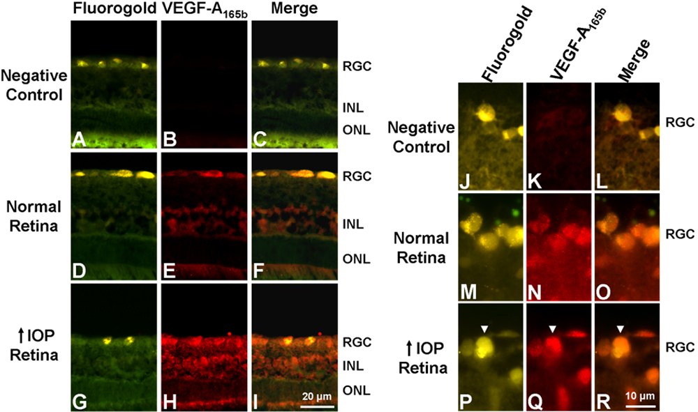 the RGC marker, Fluorogold. P-R: VEGF-A165b