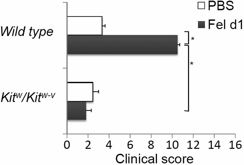 clinical symptoms in mast cell-deficient mice. The clinical scores were