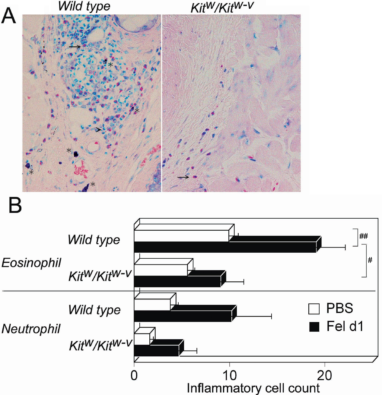 magnification. B: Recruitment of eosinophils and neutrophils in