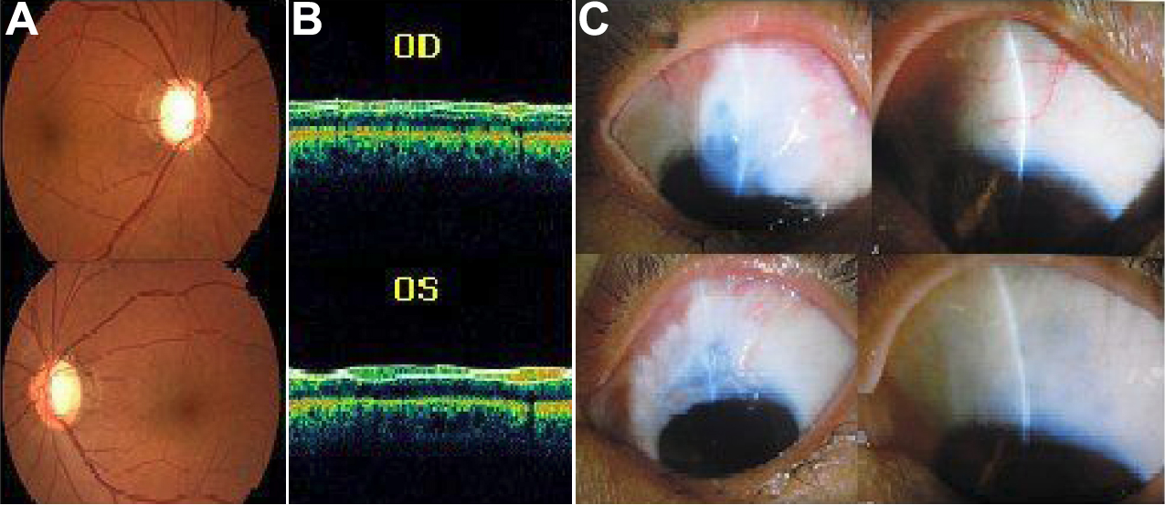 : Fundus images showing typical glaucomatous cupping of the optic disc,