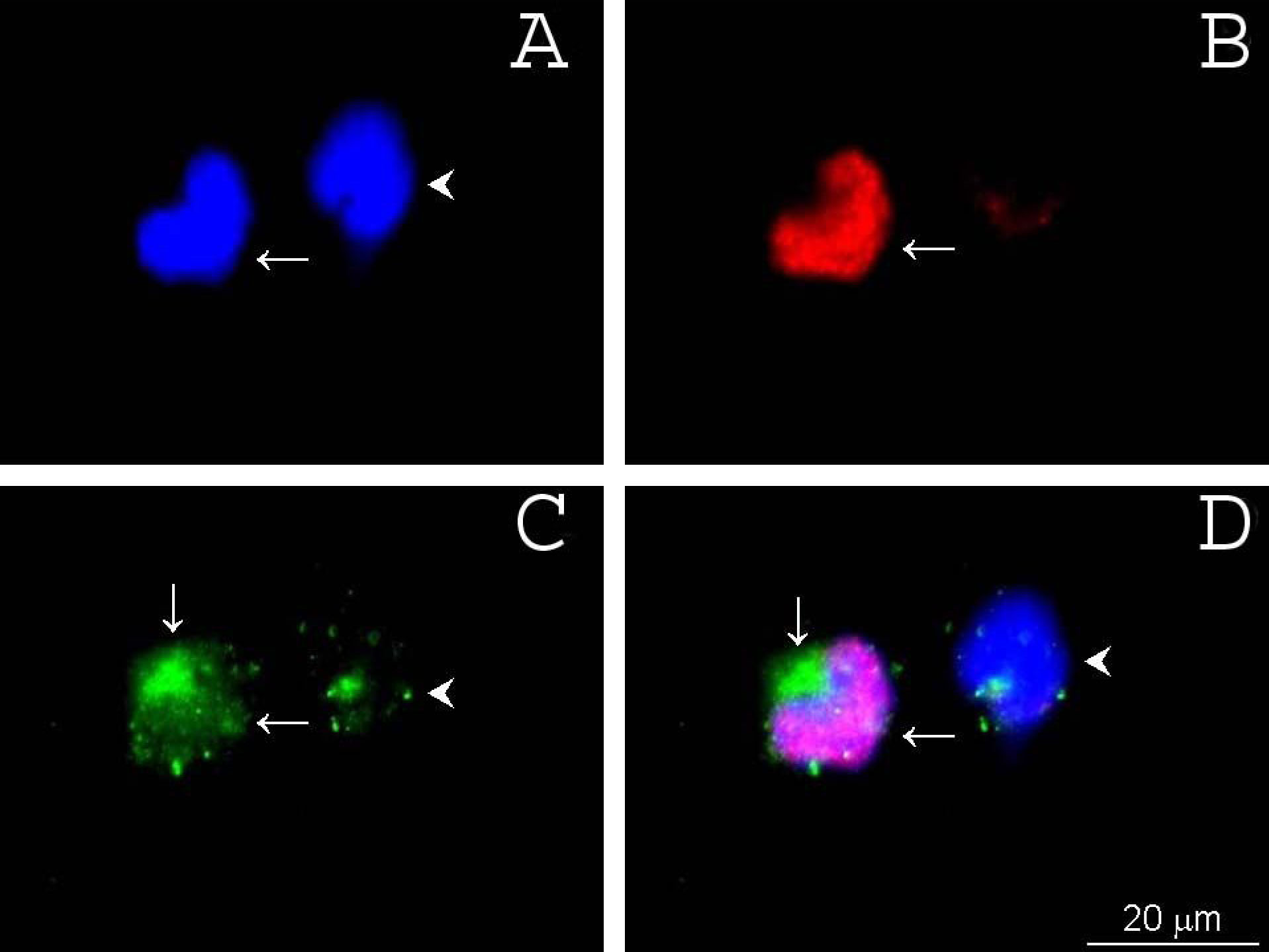Vertical arrow (C and D)points to the