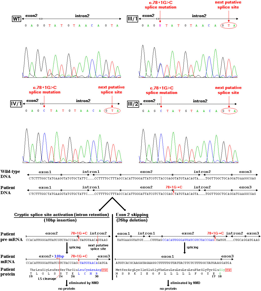 patients. In case of patients with c.78+1G→C mutation there may be two