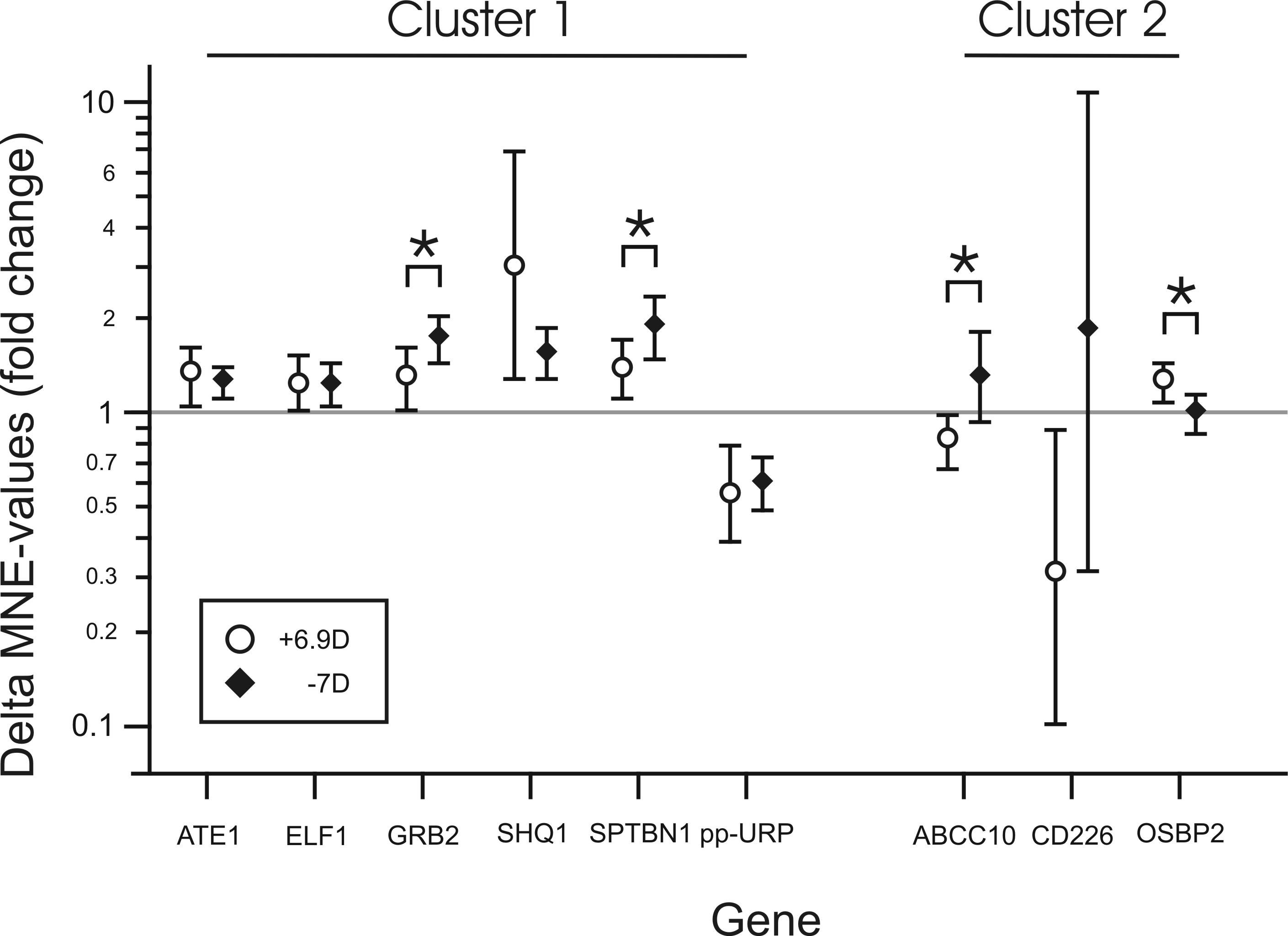 Mean Normalized Expression values, deltaMNE) and their 95% confidence