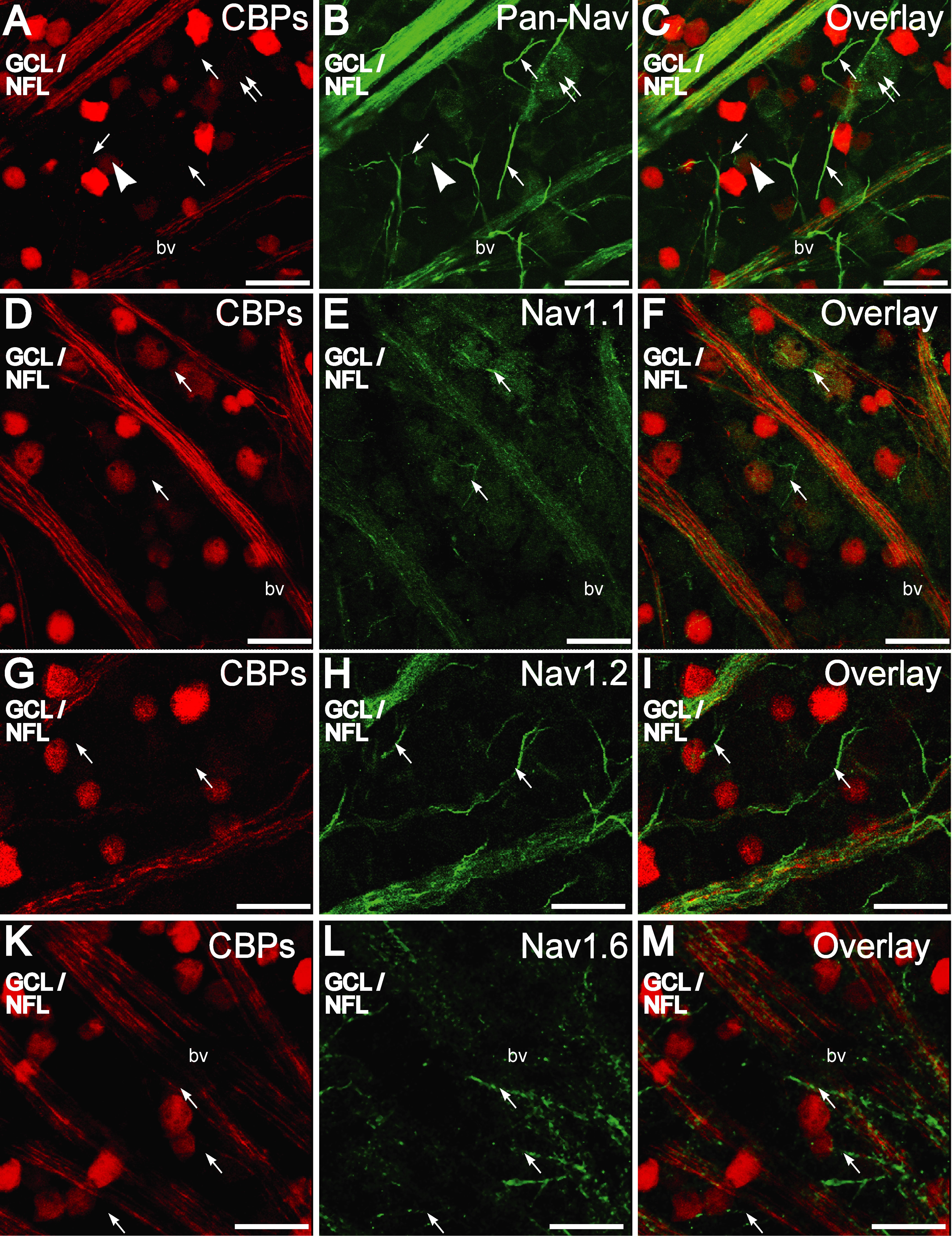 not. G-I: NaV1.2 immunopositive (green) RGC nerve