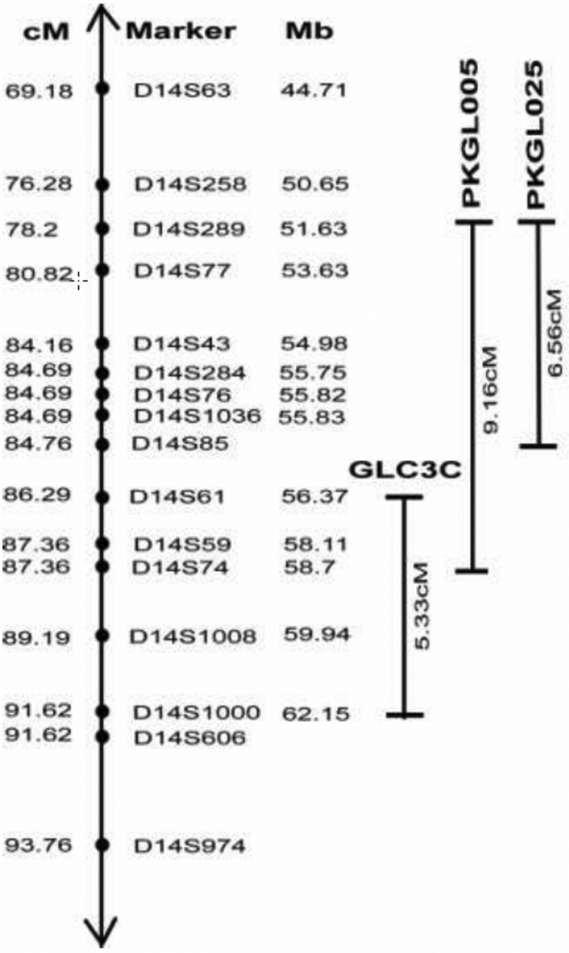 linkage on chromosome 14q24.2–24.3 in families PKGL005 and PKGL025.