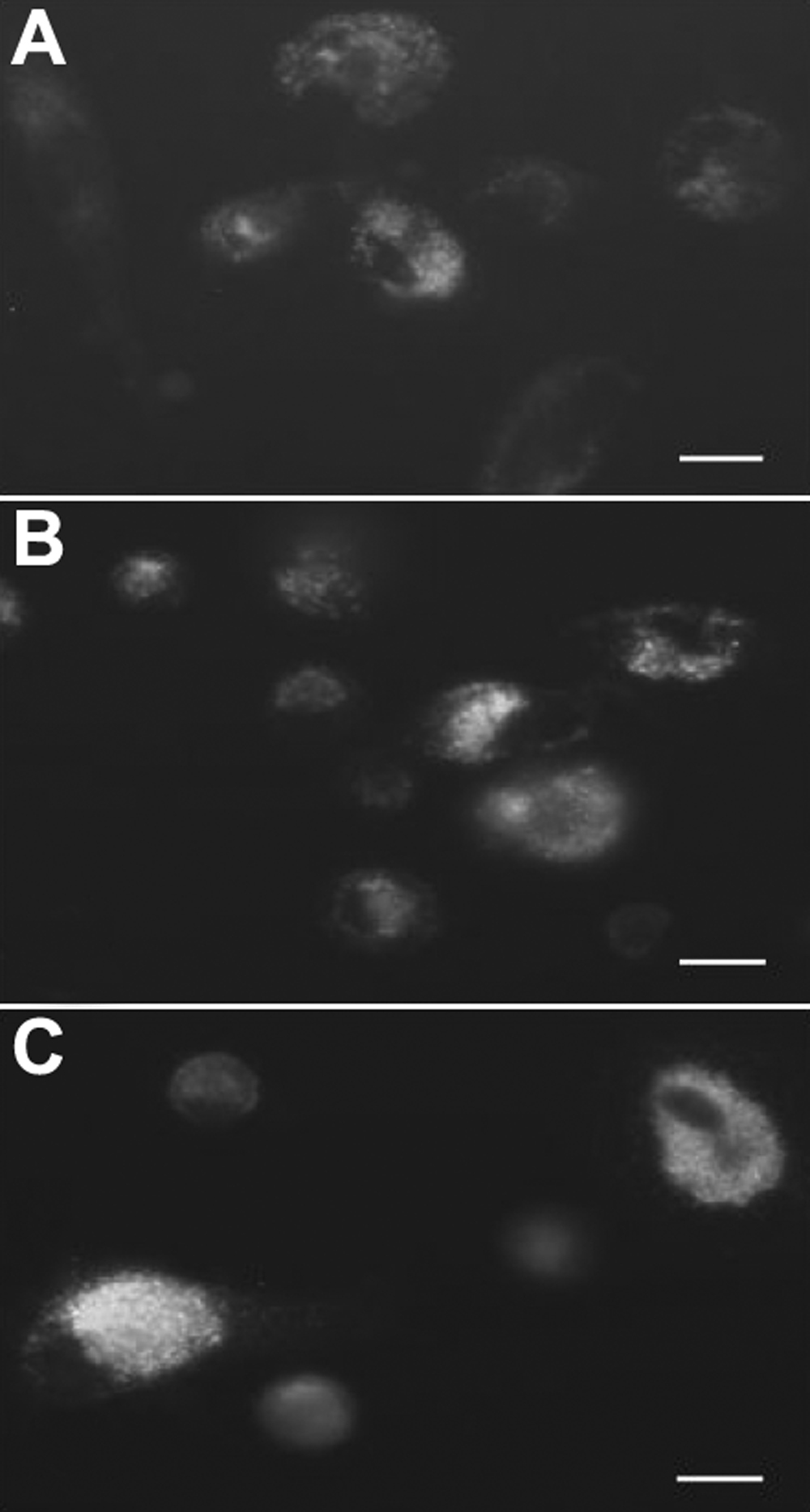 mitomycin C for 24 h. The intensity of fluorescence staining with