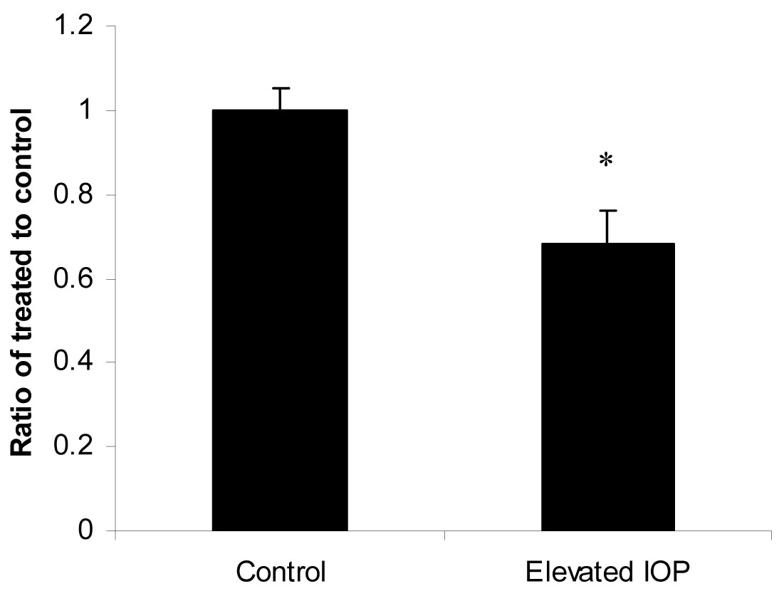 significance of ratio from IOP treatment versus that of control as