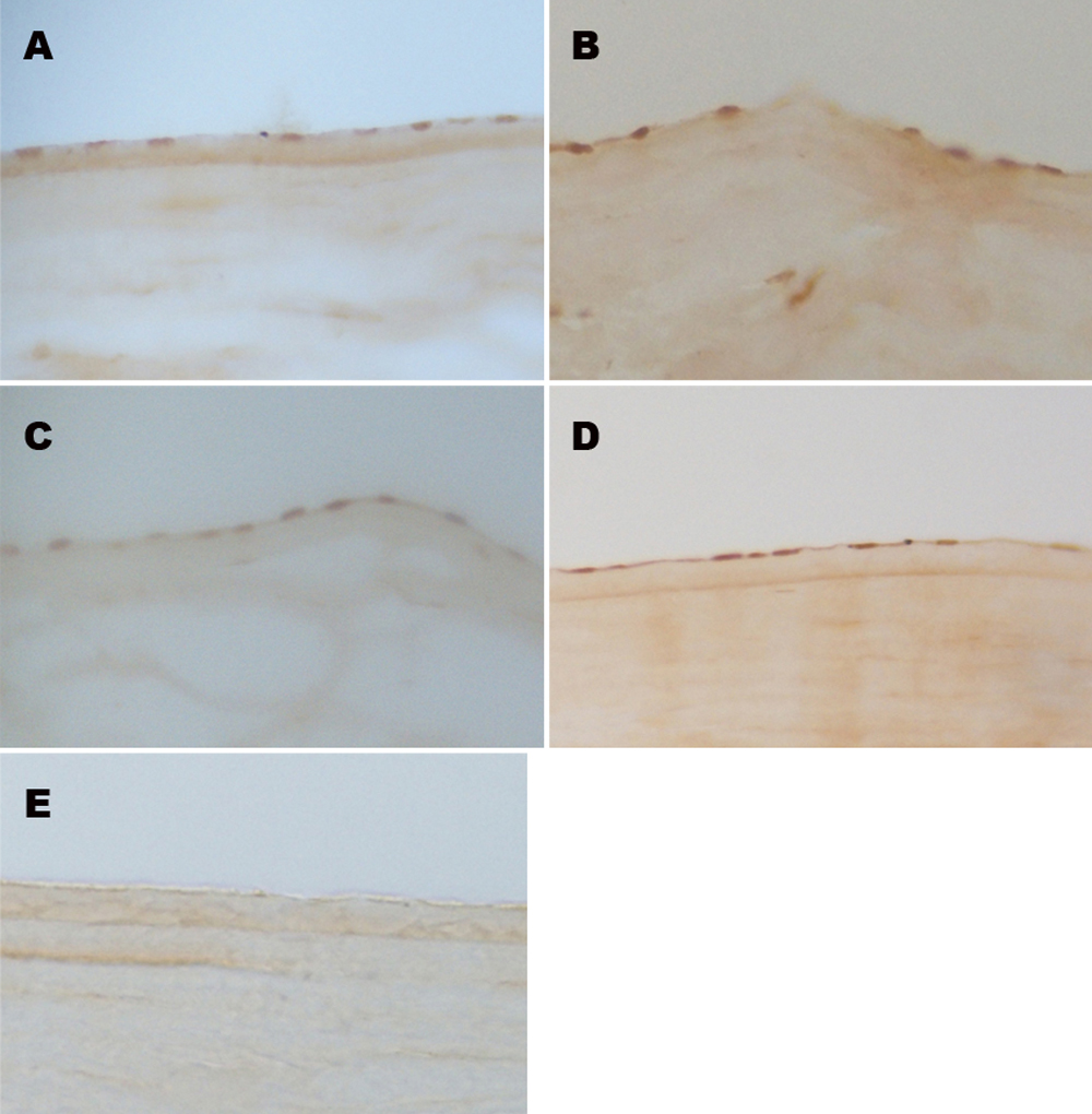 fresh-frozen sections of human corneas from donors at various ages (A: