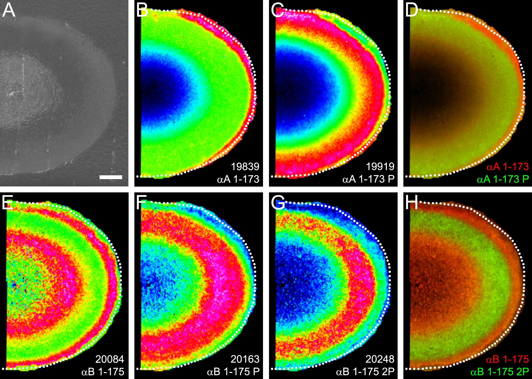 full-length αA-crystallin (red) and phosphorylated αA-crystallin
