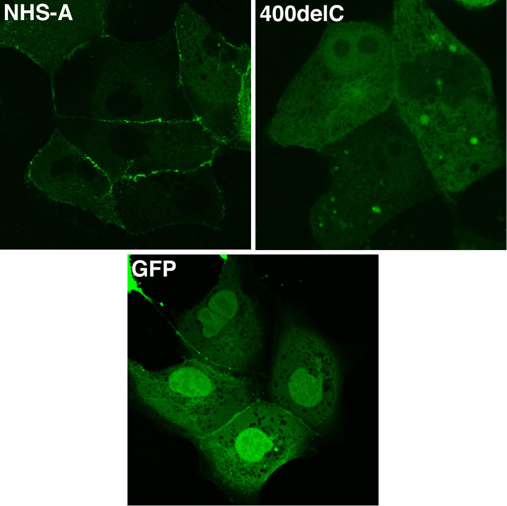 periphery whereas GFP-NHS-A400delC mutant protein localized in the