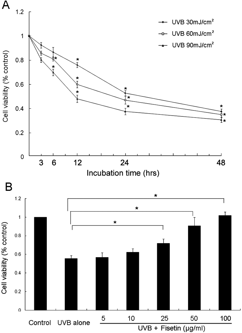 exposure to 30 mJ/cm2 UVB was estimated using MTT assay
