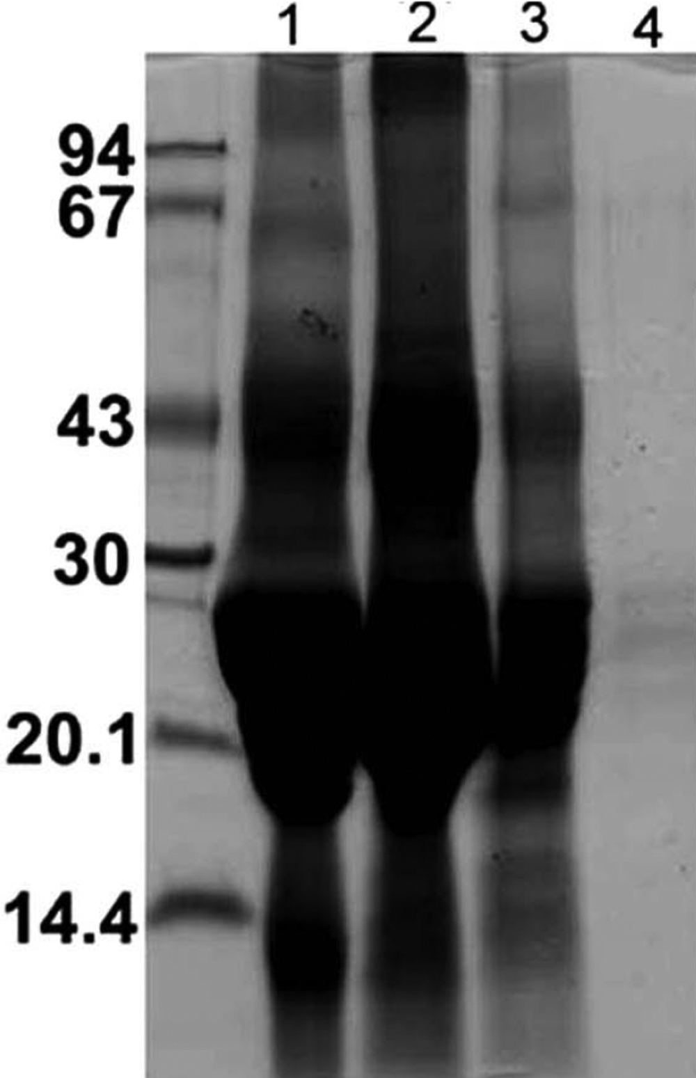 column. Lane 3: Proteinase fractions recovered following non-denaturing