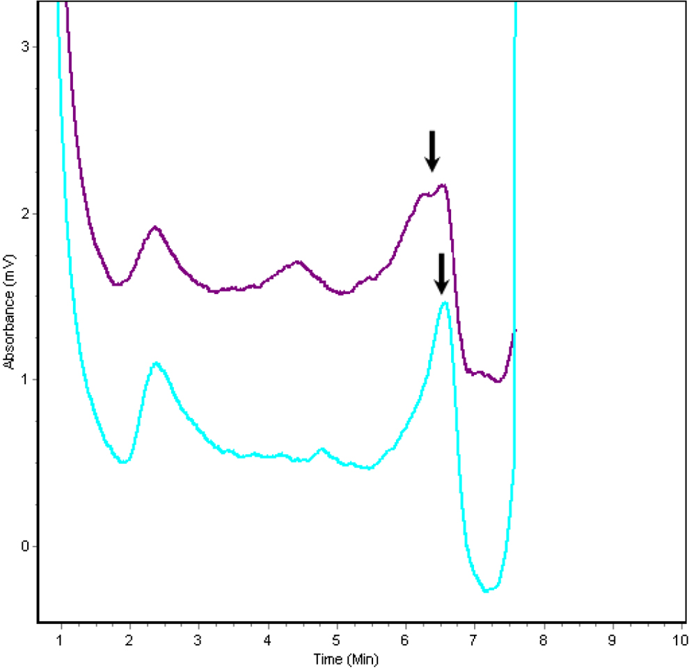 liquid chromatography results of wild type and mutated BFSP2.