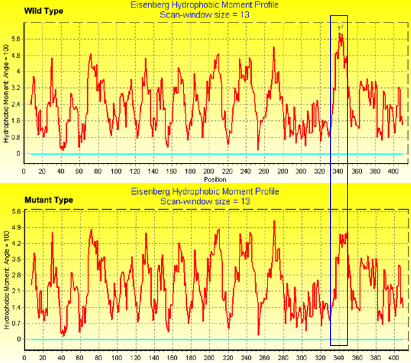 hydrophobic moment. The hydrophobic moment of the mutant protein