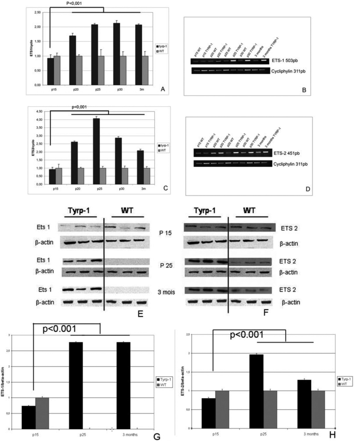 (Tyrp-1), with respect to control mice (WT) between P15 and three