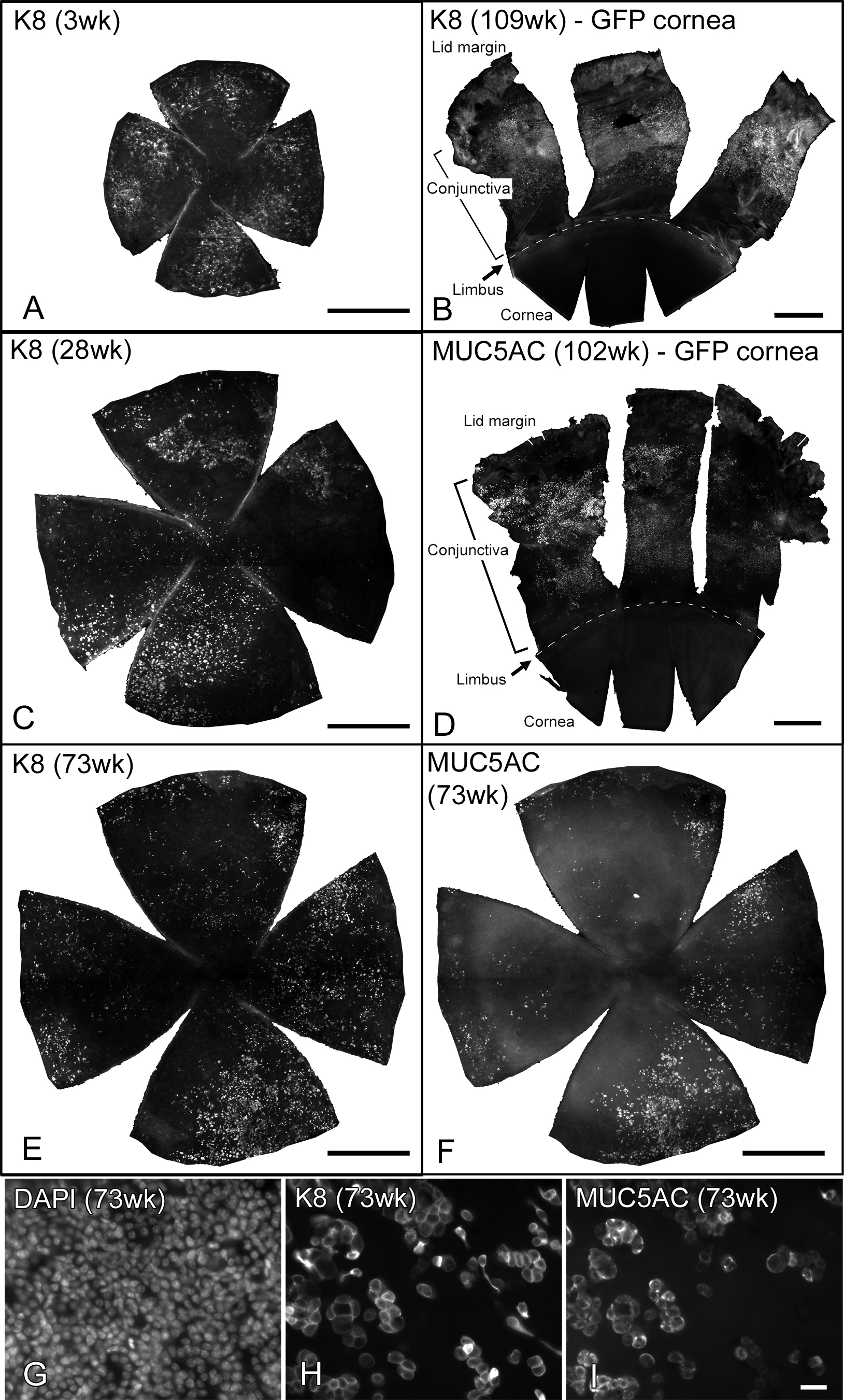 with K8. Bars: 500 µm (A-F), 20 µm (G-I).