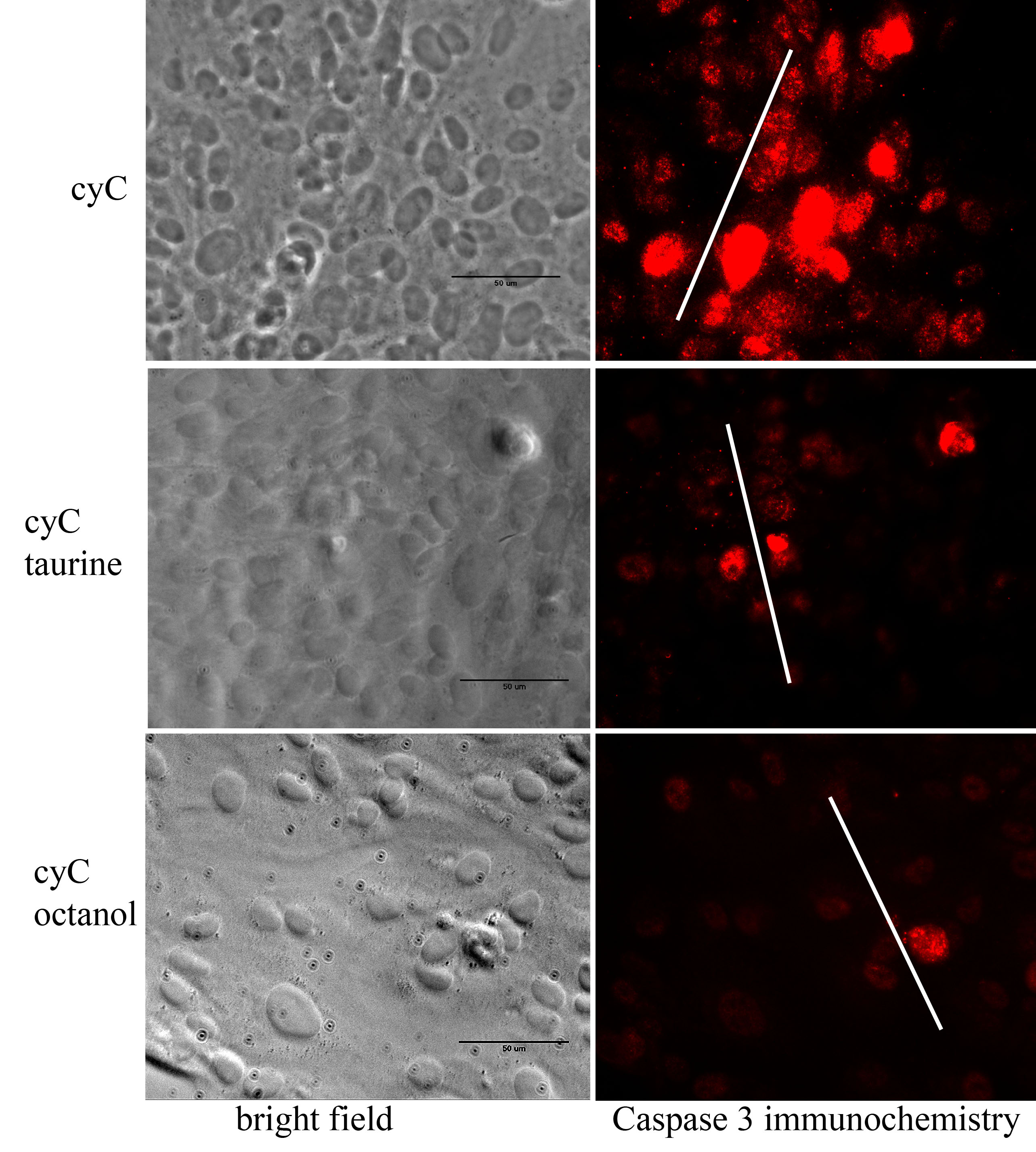 blocker octanol, an antibody to active caspase 3 shows that cell death