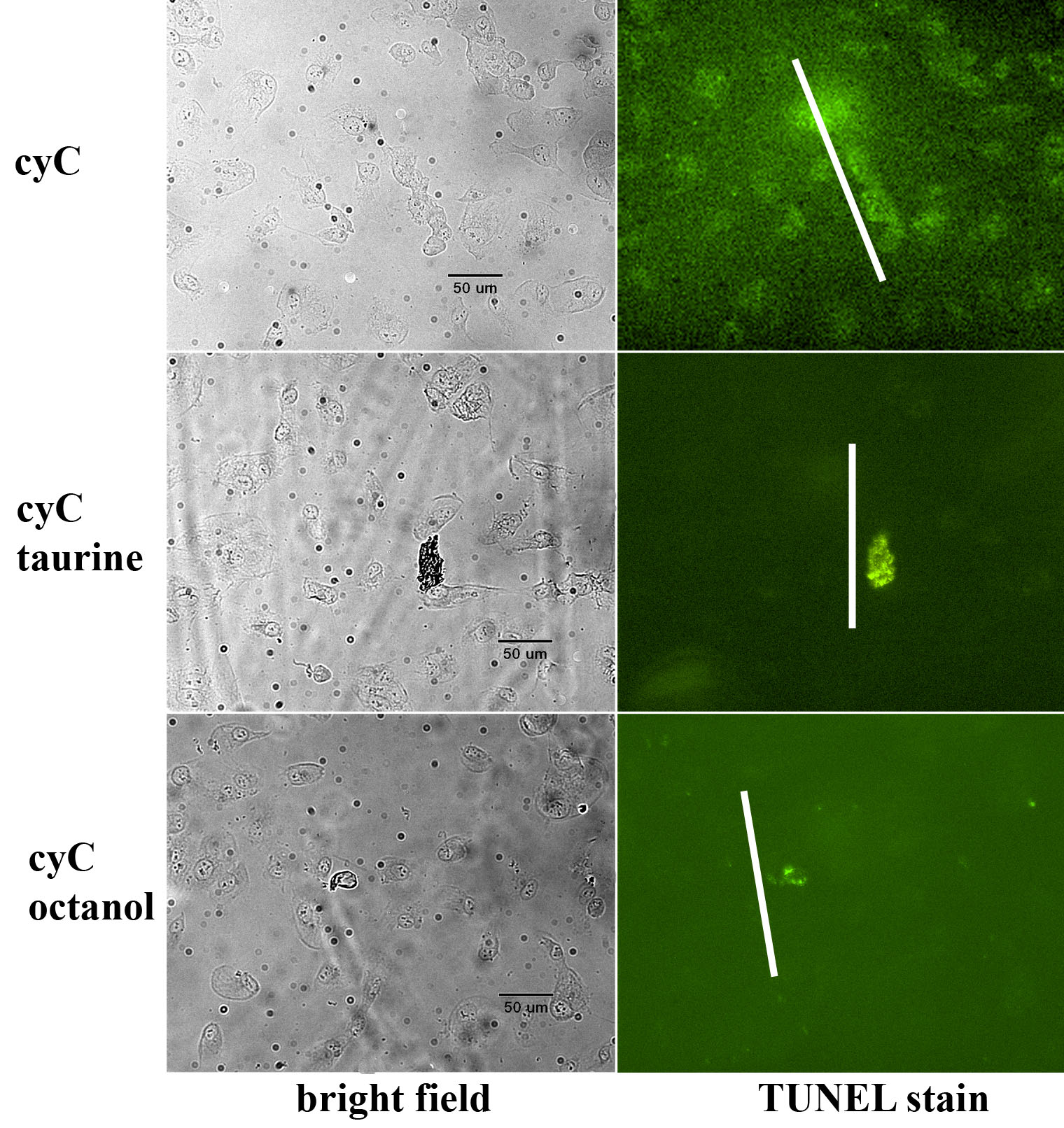 cyC-induced apoptosis in the presence of taurine. Octanol had a similar