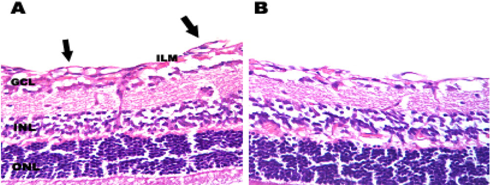 apparent (black arrows). B: P17 retina from the eye of hypoxic