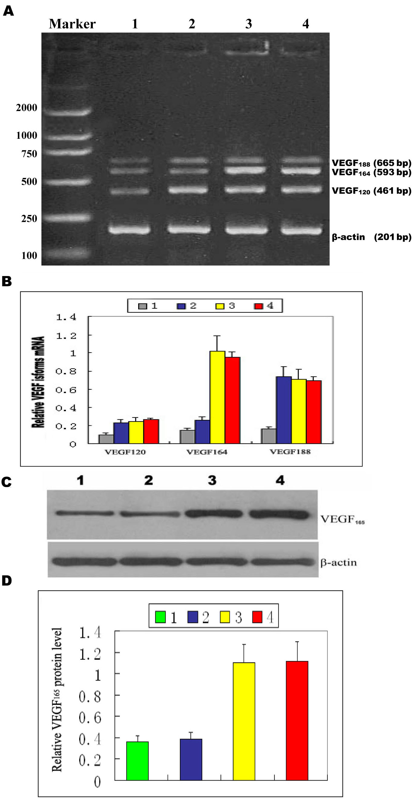 and outer nuclear layer (ONL). D: The levels of VEGF165