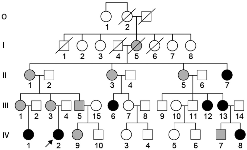additional anterior segment eye abnormalities. The proband, IV-2, is