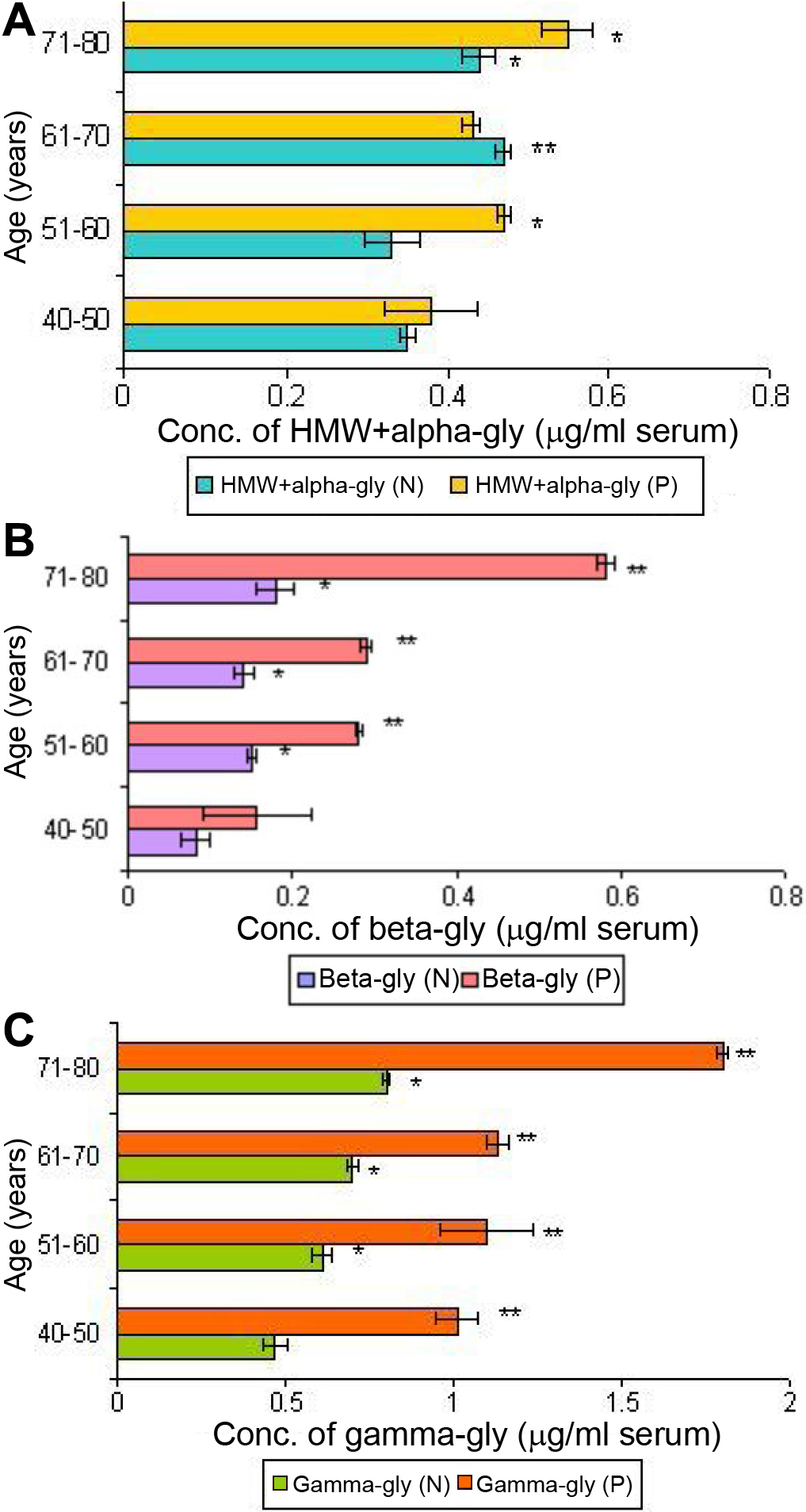 Profile of HMW+α-glycated crystallins in peripheral circulation during