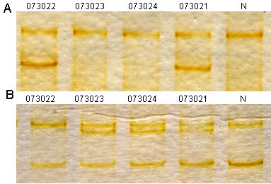 and carriers, but not with the unaffected individuals and normal control (two bands). Participant identification number is